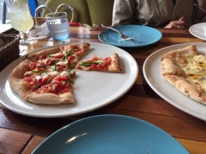 もちもちとした生地、チーズのピザは蜂蜜をかけるとデザートみたいに楽しめ、
